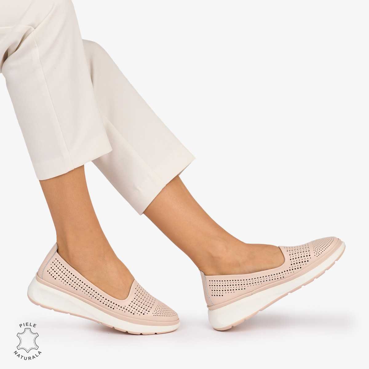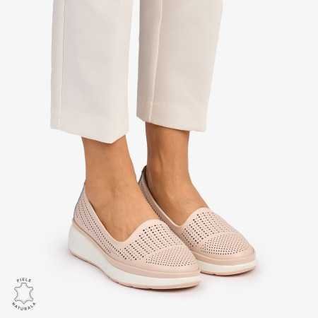 Balerini dama din Piele Naturala Perforata CRL1075 CULOARE: Roz