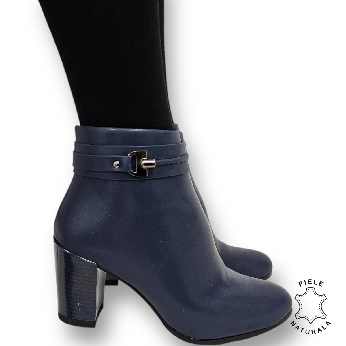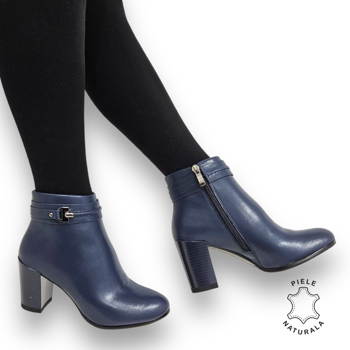 Botine DAMA din PIELE Naturala cu FERMOAR si Catarama CRL0929 CULOARE: Navy
