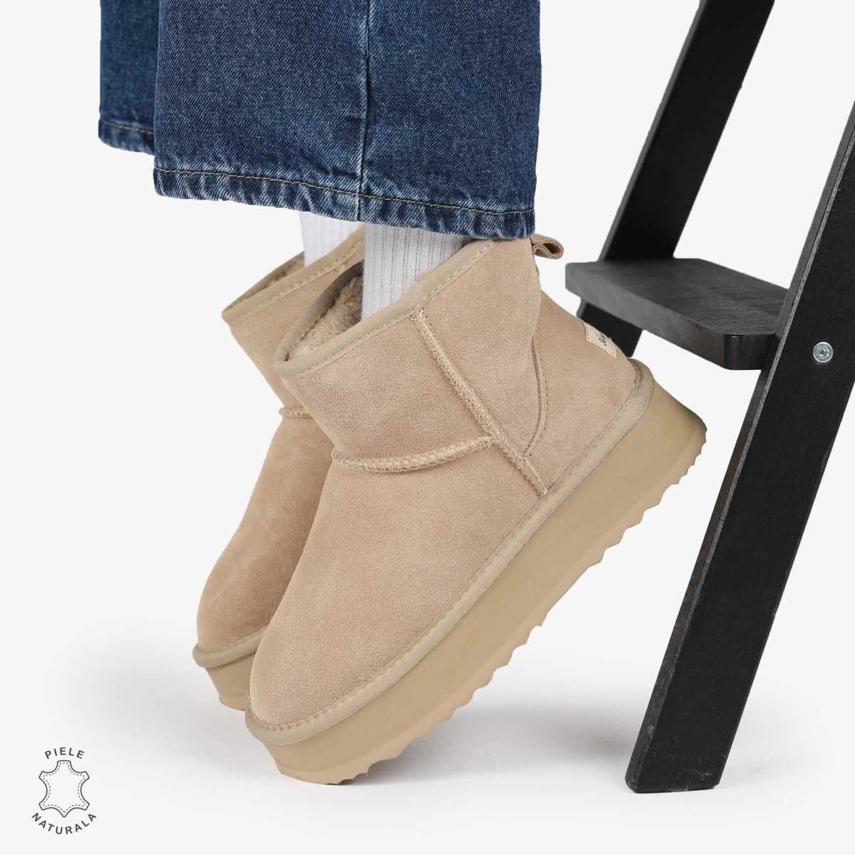 CIZME TIP UGG DAMA din PIELE NATURALA INTOARSA CRL0893 CULOARE:GRI