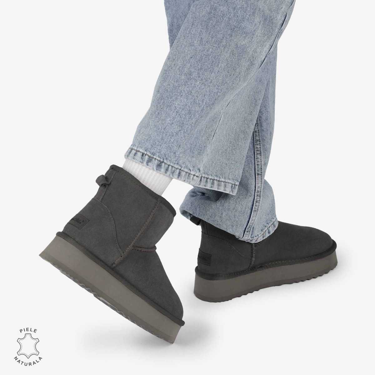 CIZME TIP UGG DAMA din PIELE NATURALA INTOARSA CRL0893 CULOARE:GRI