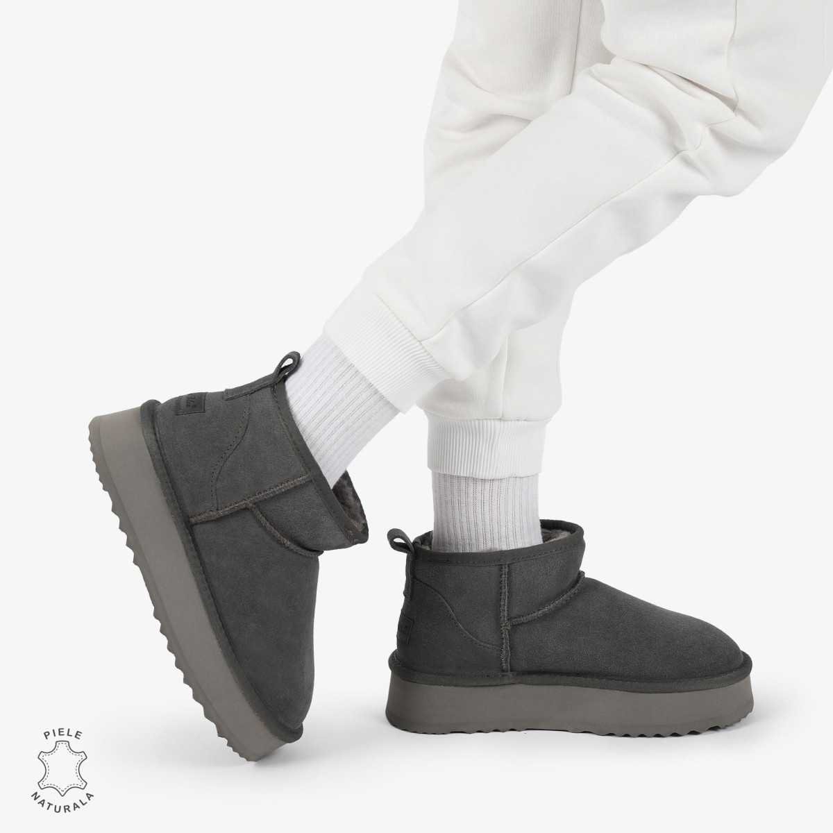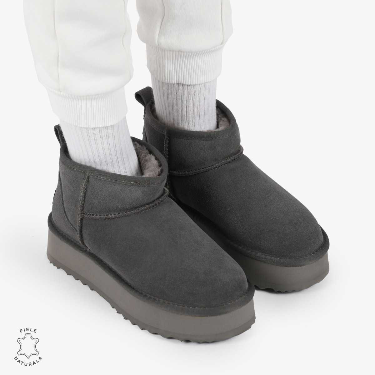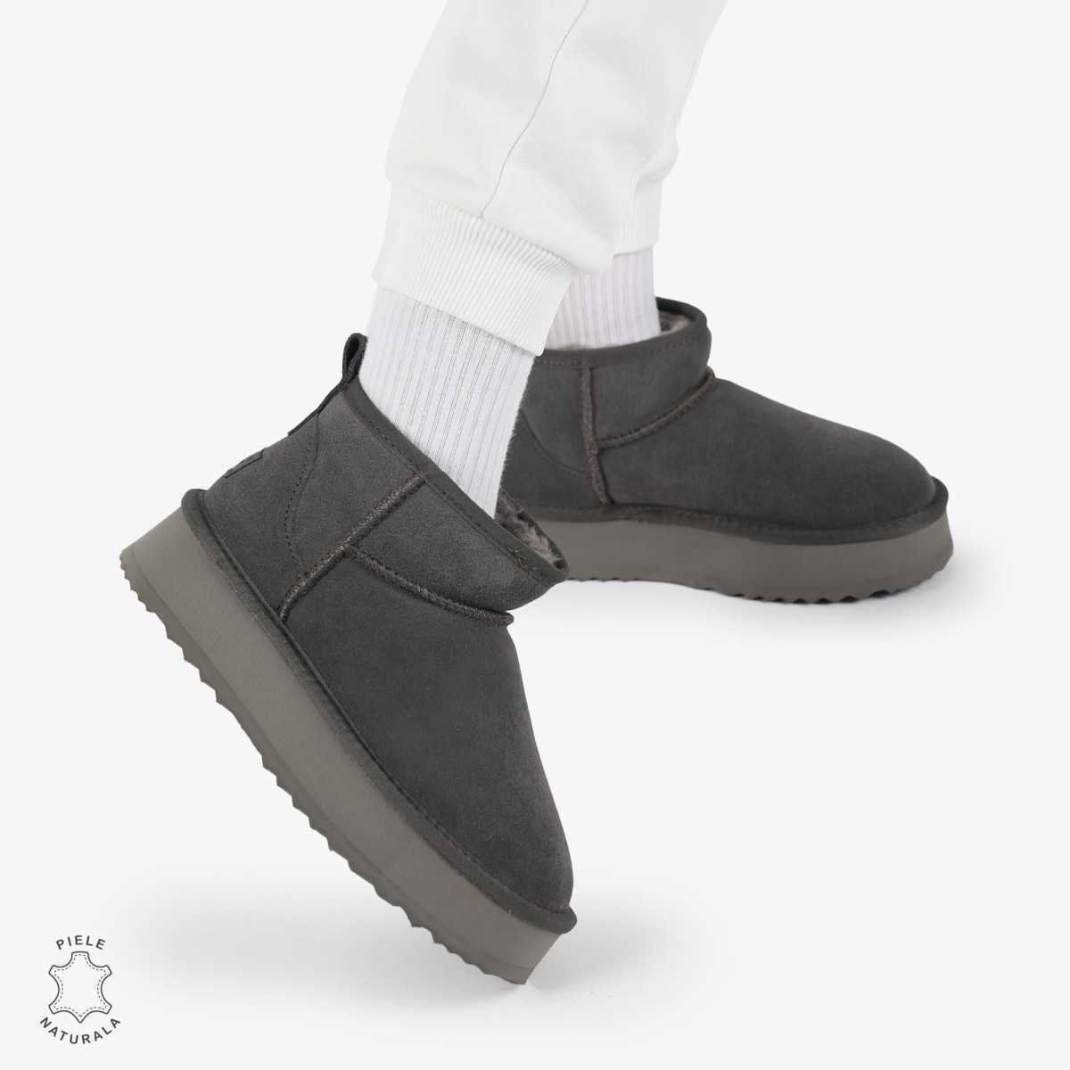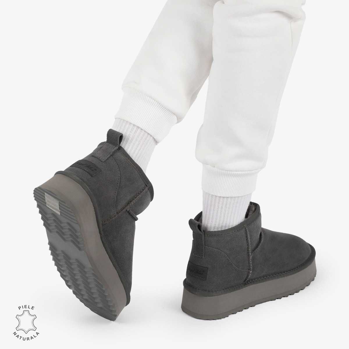 CIZME TIP UGG DAMA SCURTE din PIELE NATURALA INTOARSA CRL1267 CULOARE: GRI INCHIS