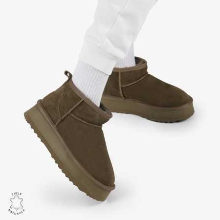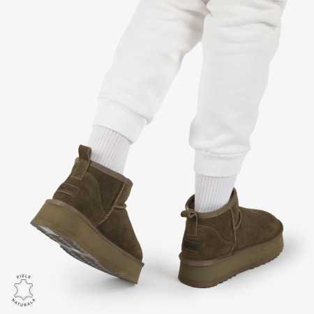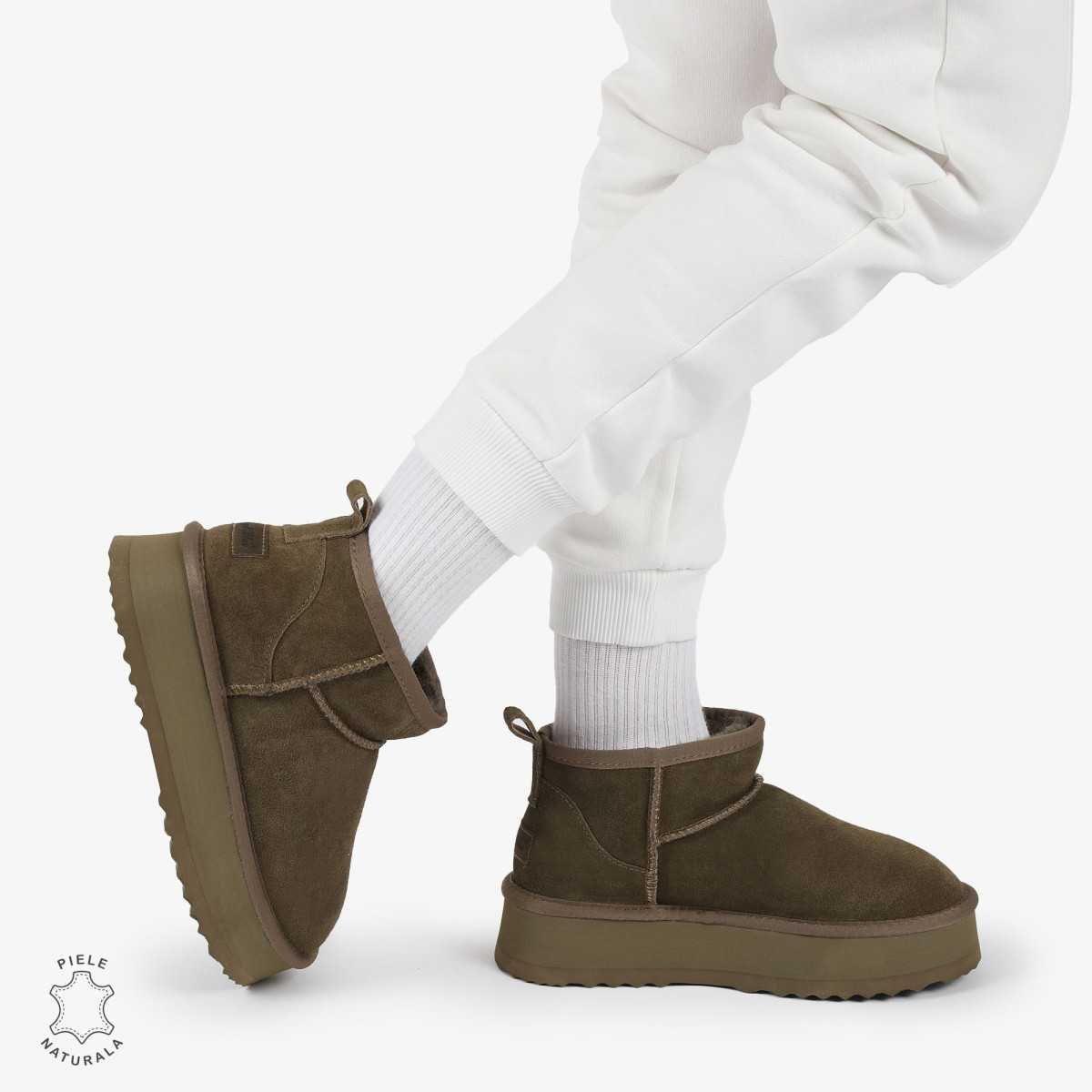 CIZME TIP UGG DAMA SCURTE din PIELE NATURALA INTOARSA CRL1267 CULOARE: VERDE INCHIS