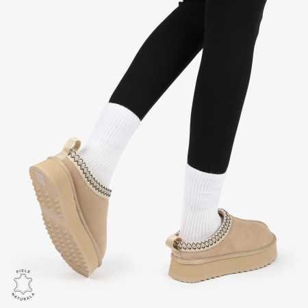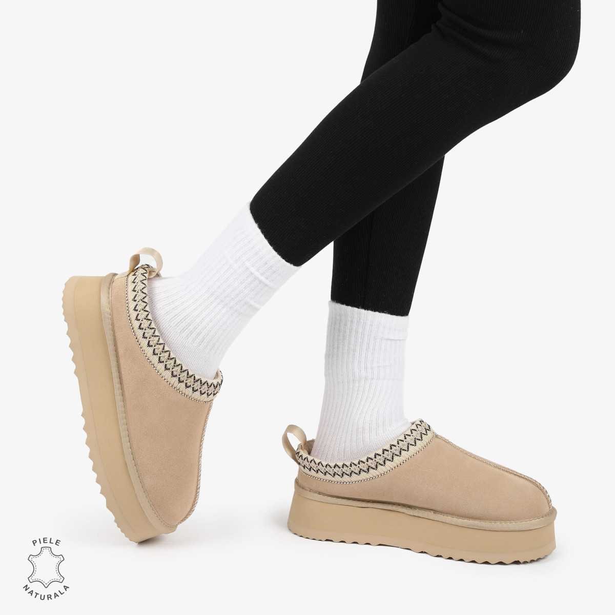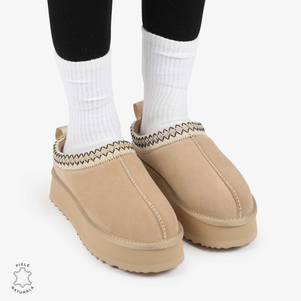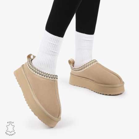 PAPUCI DAMA TIP UGG din PIELE NATURALA INTOARSA CRL1268 CULOARE: BEJ