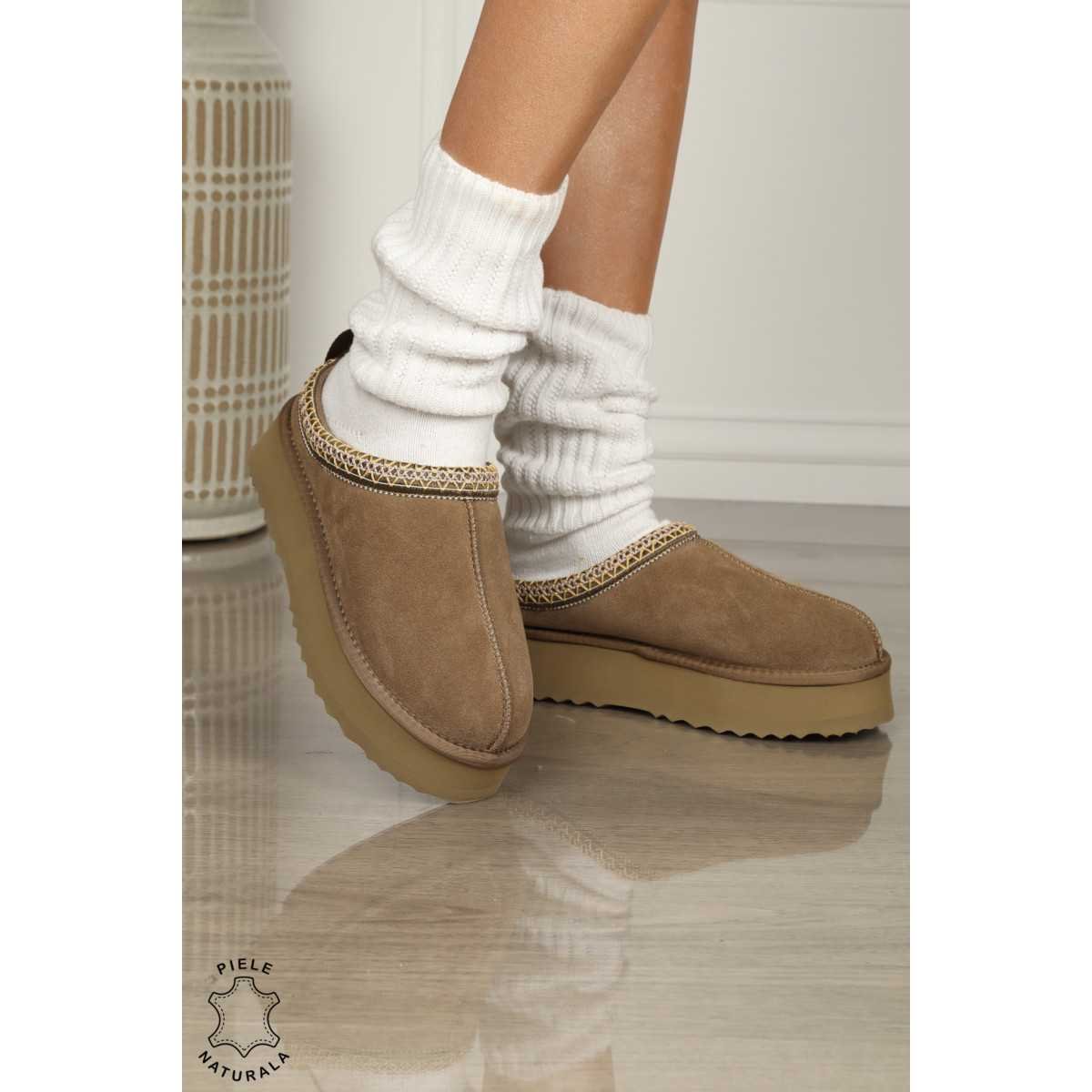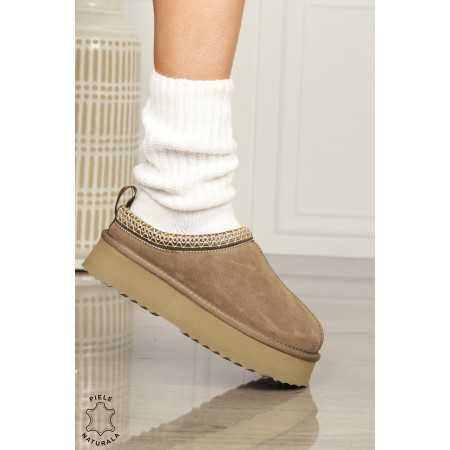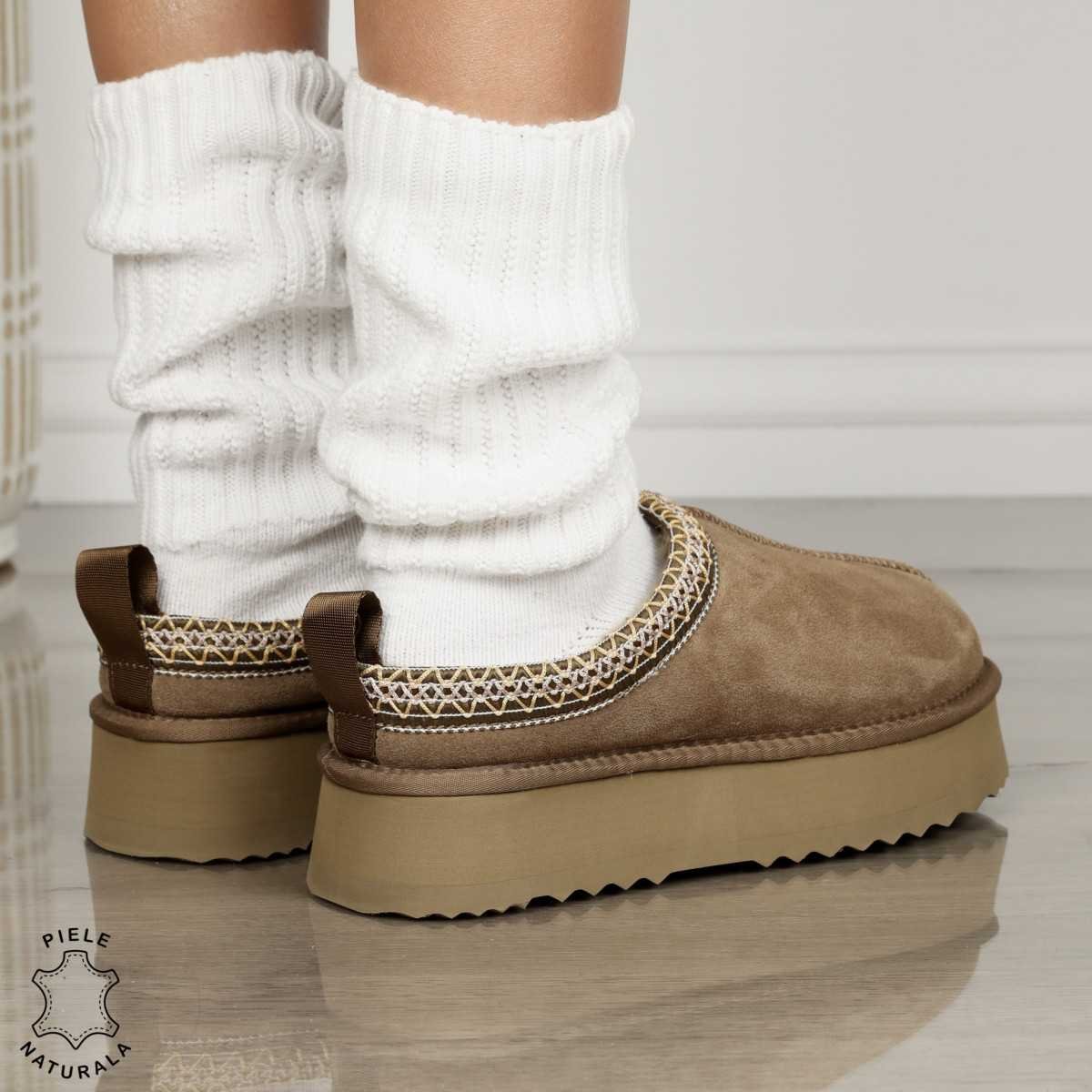 PAPUCI DAMA TIP UGG din PIELE NATURALA INTOARSA CRL1268 CULOARE: KHAKI