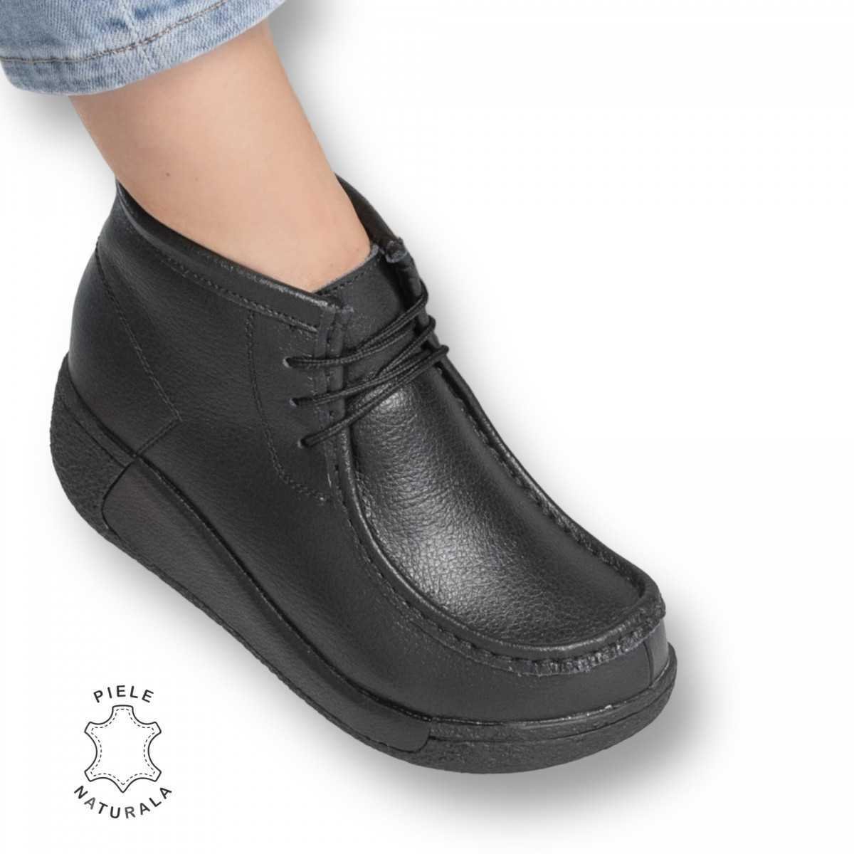 GHETE DAMA din PIELE NATURALA cu siret Dublu CRL0897 CULOARE:Negru