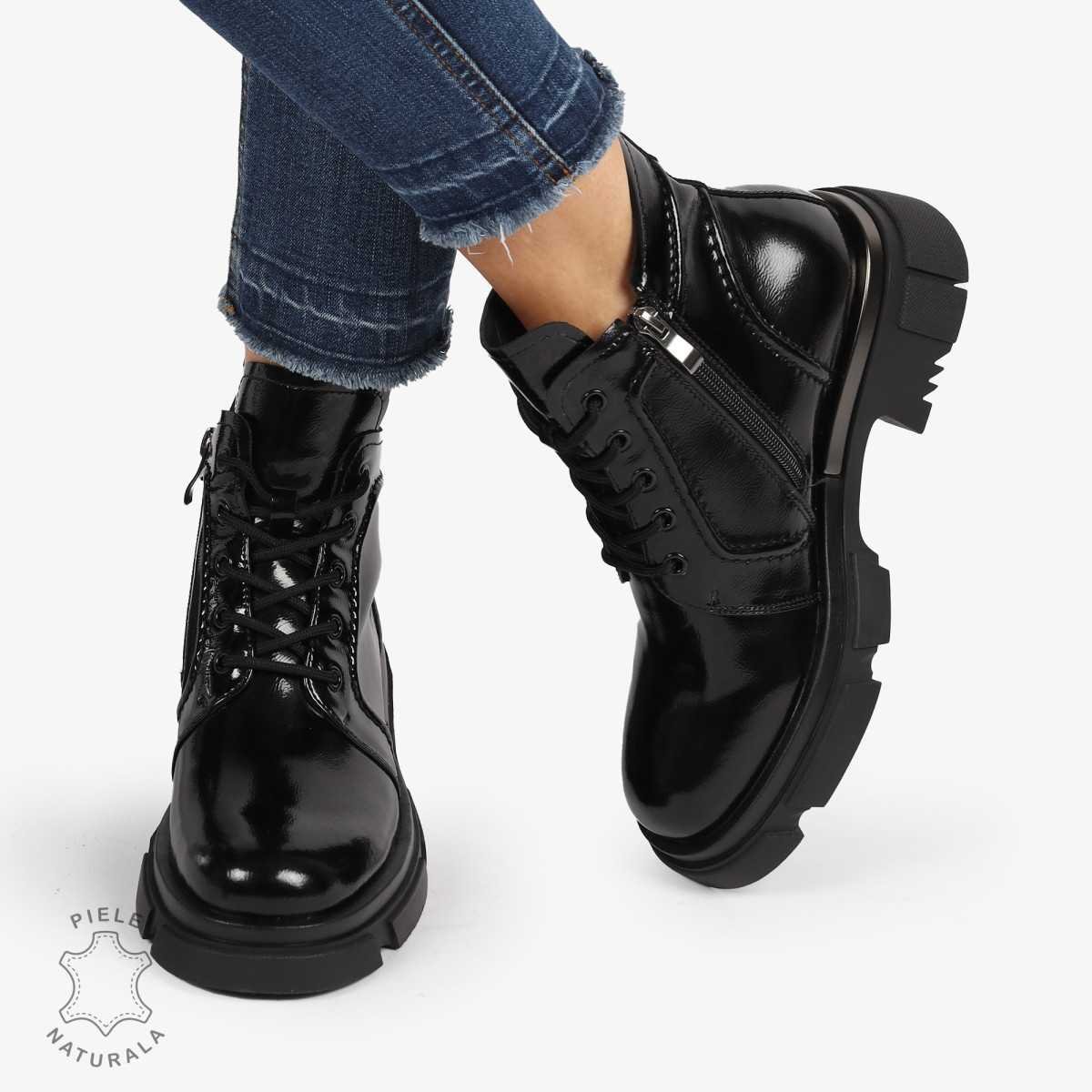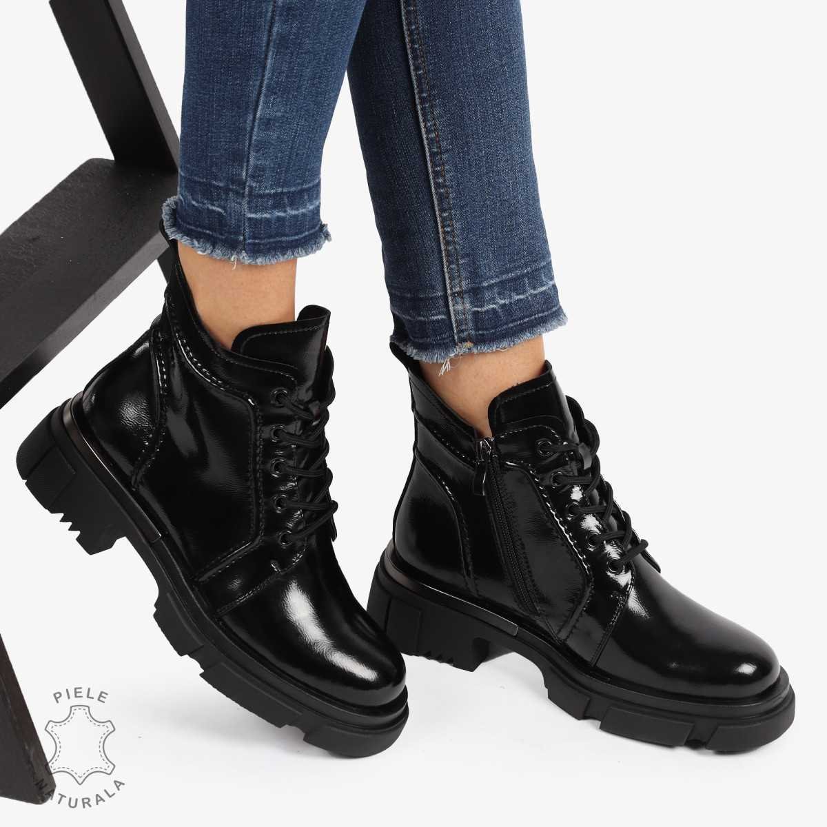 GHETE DAMA din PIELE NATURALA cu siret Dublu CRL0897 CULOARE:Negru