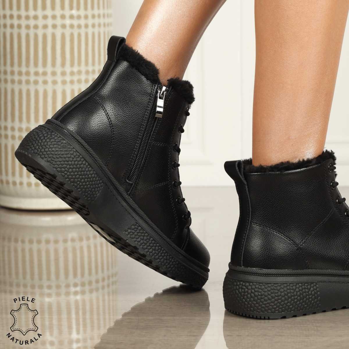 GHETE DAMA PIELE NATURALA cu fermoar lateral si siret și talpă confortabilă...