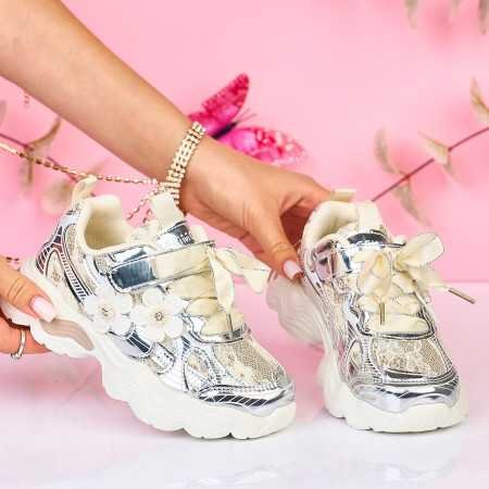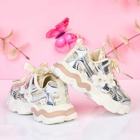 Incaltaminte copii din piele ecologica cu siret special si decor floral lateral CRL1468