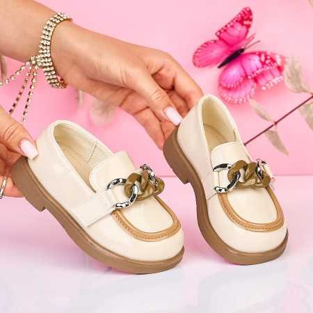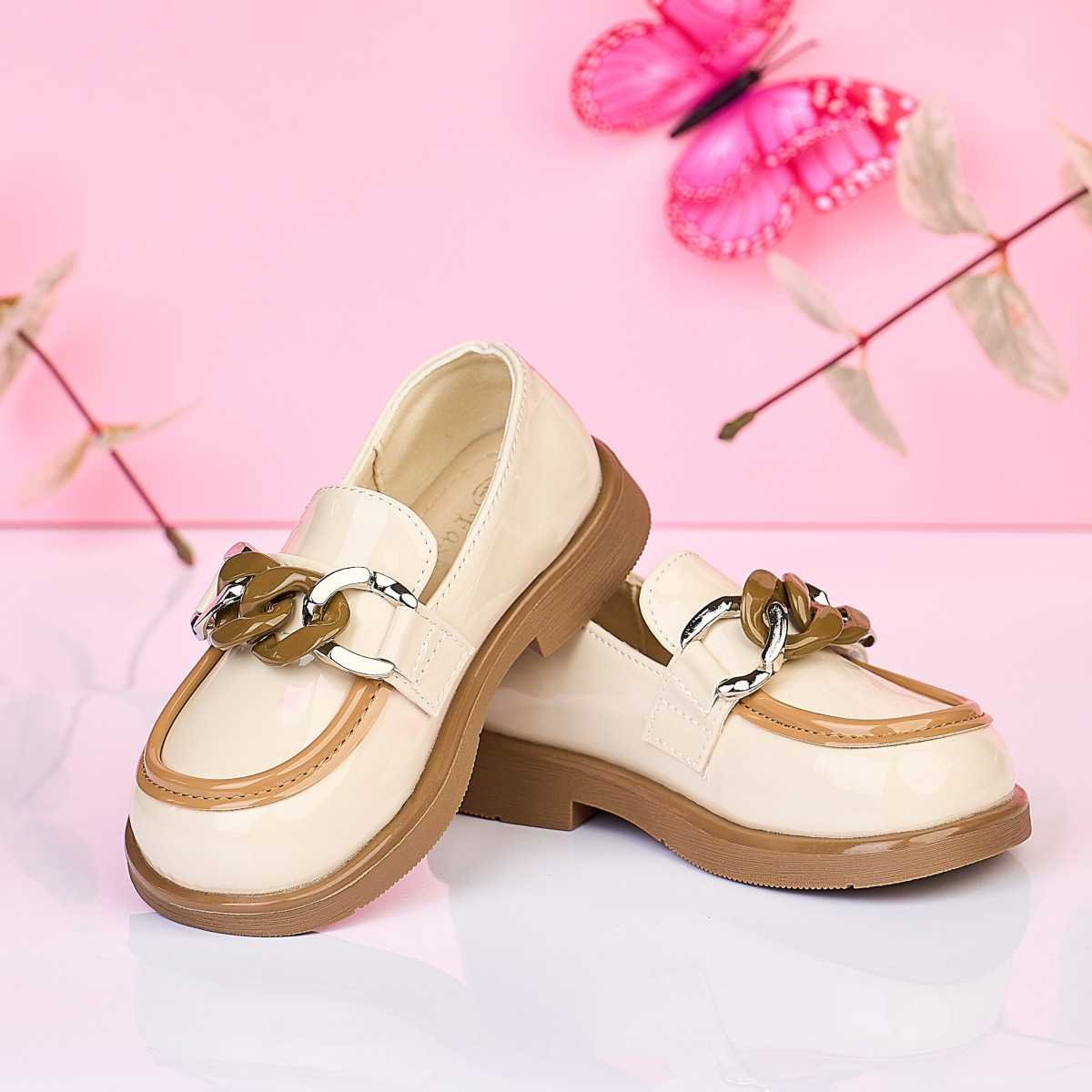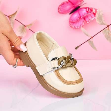 Mocasini copii din piele ecologica LACUITA cu CATARAMA TIP LANT ARGINTIU CRL1477