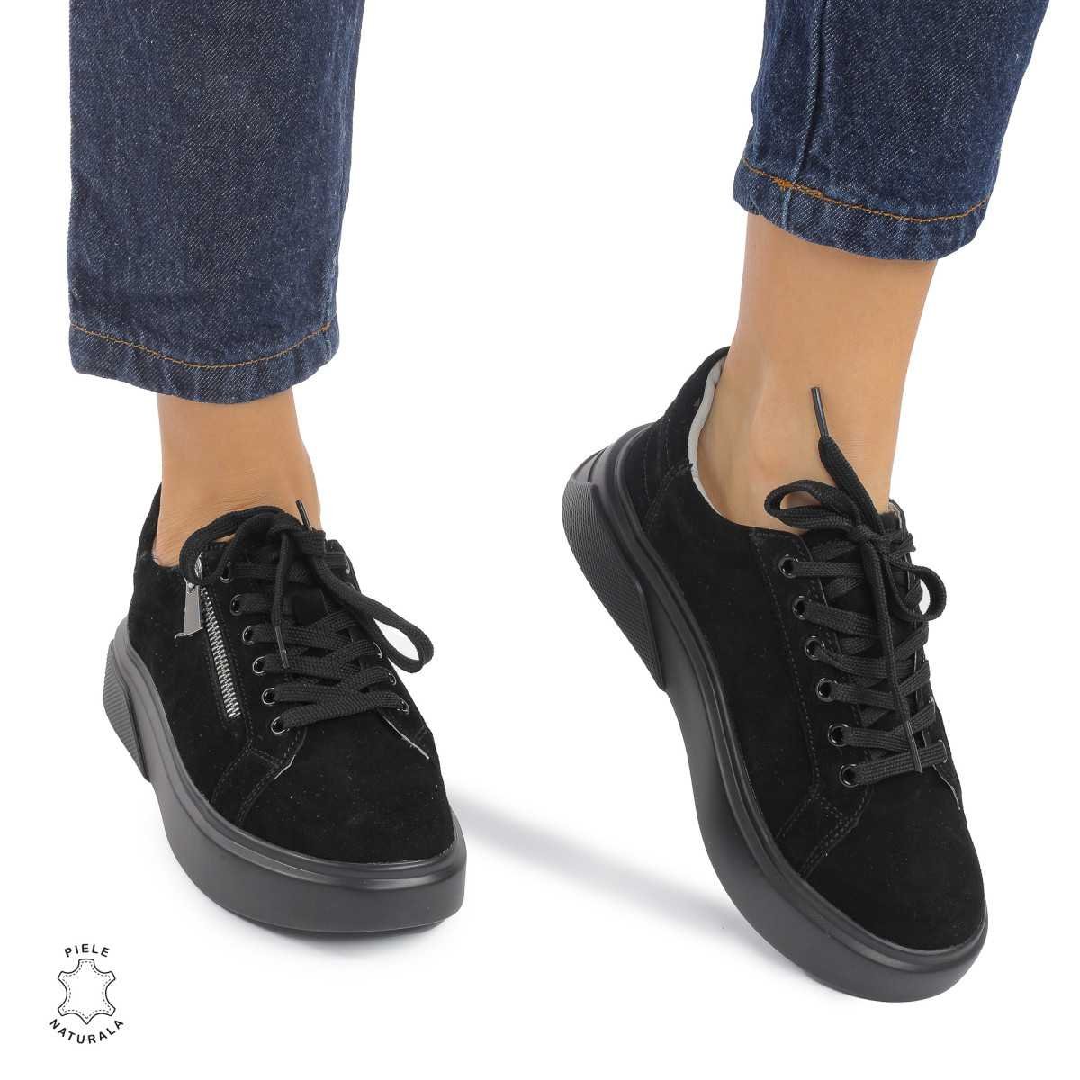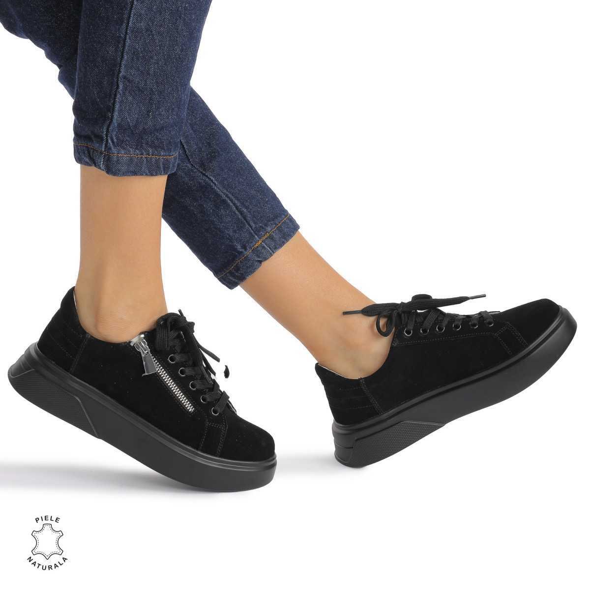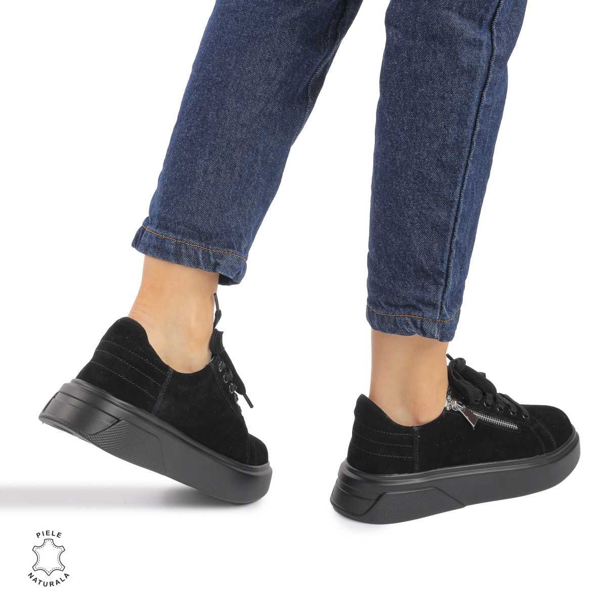Pantofi Casual DAMA din PIELE Naturala Intoarsa CRL0940 CULOARE: Negru