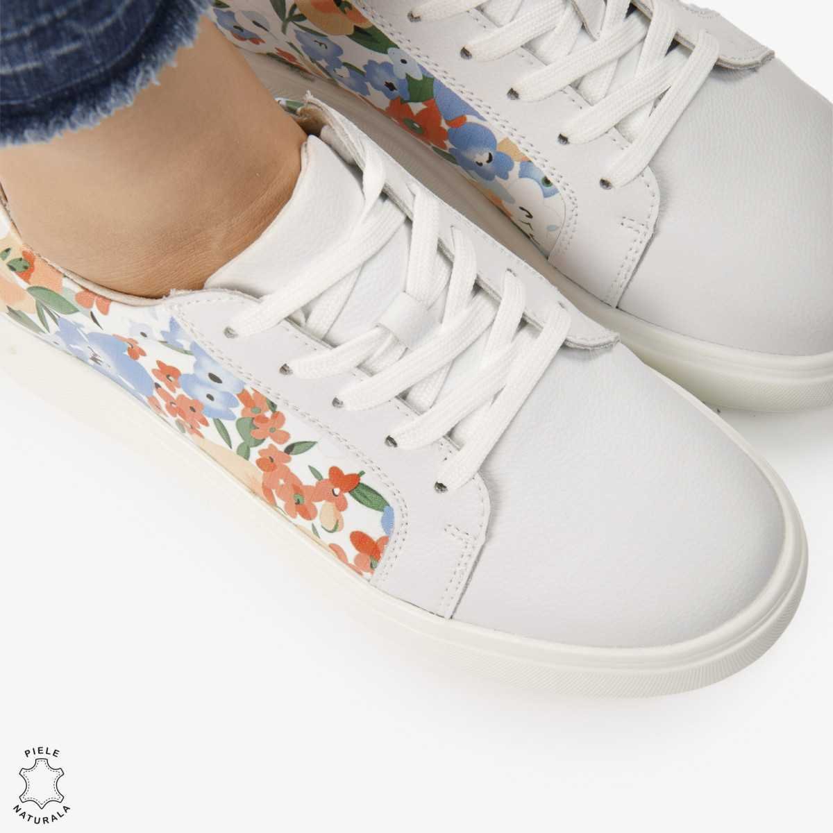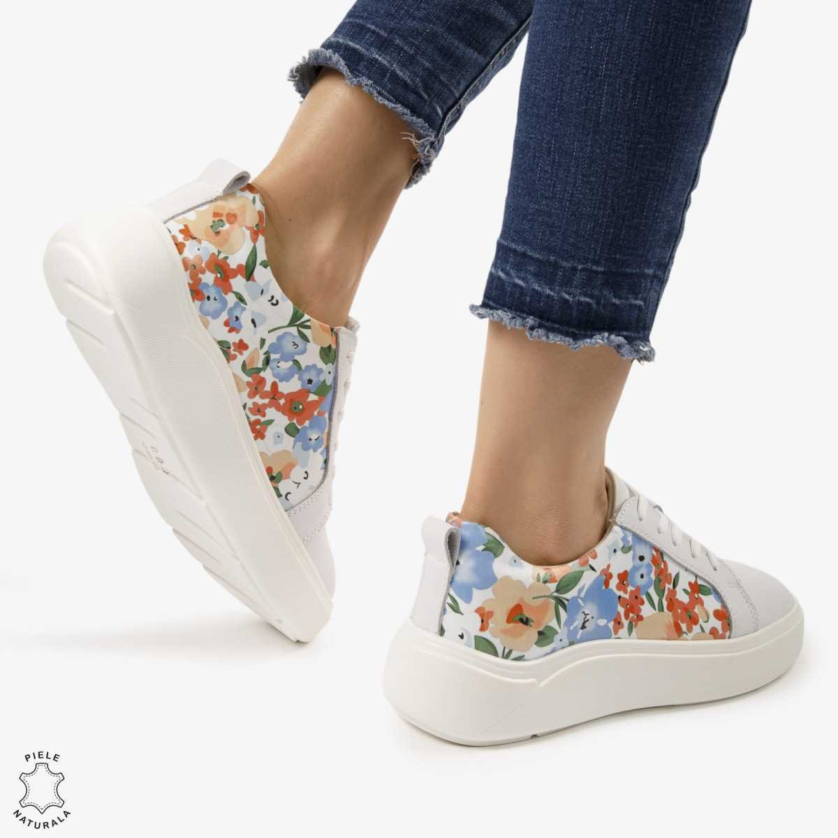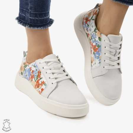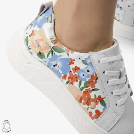 Pantofi Casual DAMA din PIELE Naturala cu imprimeu floral CRL0949 CULOARE: Alb