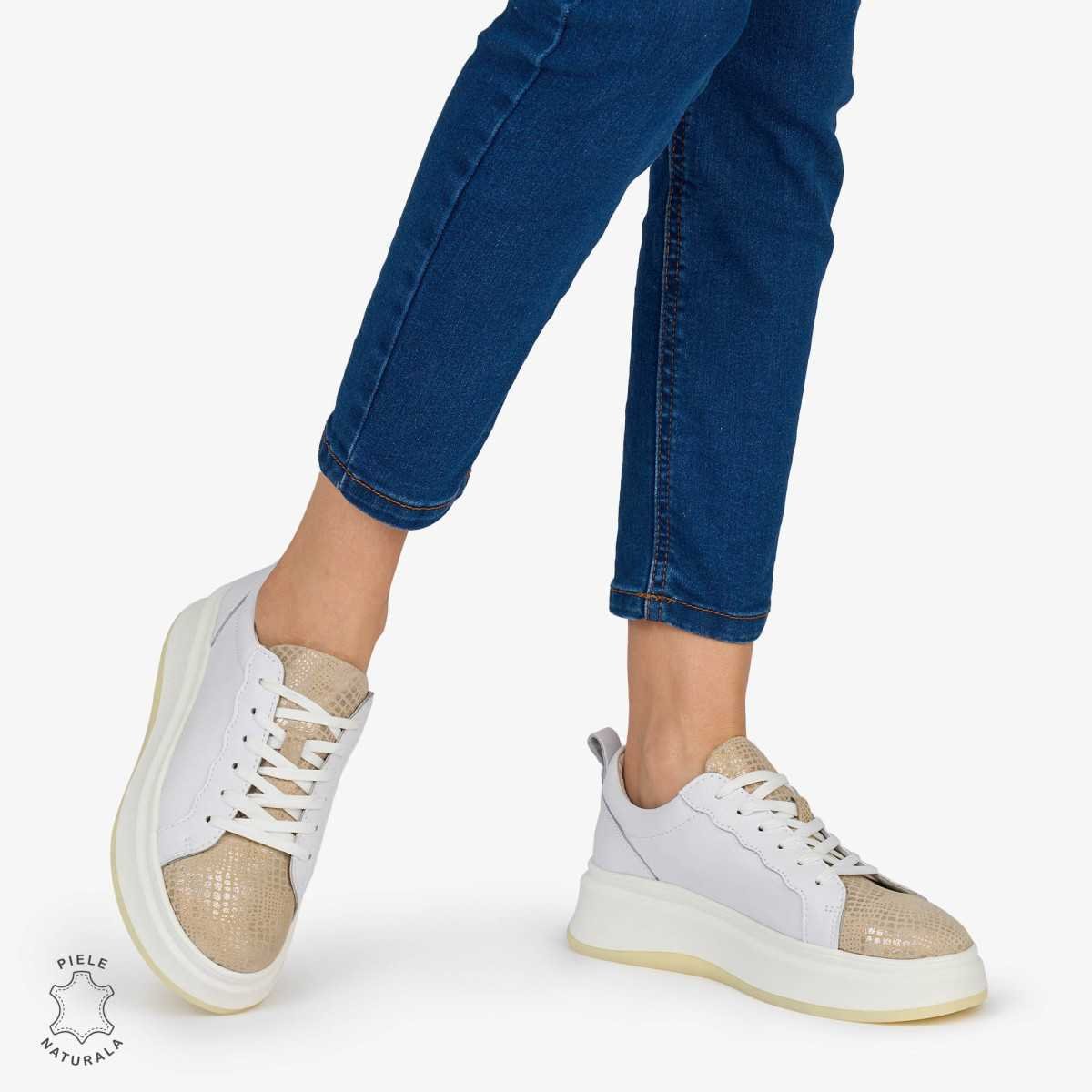 Pantofi Casual DAMA din PIELE Naturala CRL0947 CULOARE: ALB