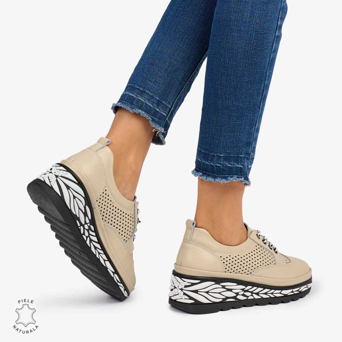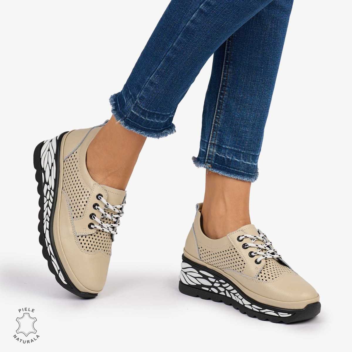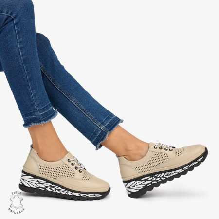 Pantofi Casual dama din Piele Naturala perforata talpa speciala cu model CRL1073 CULOARE: BEJ