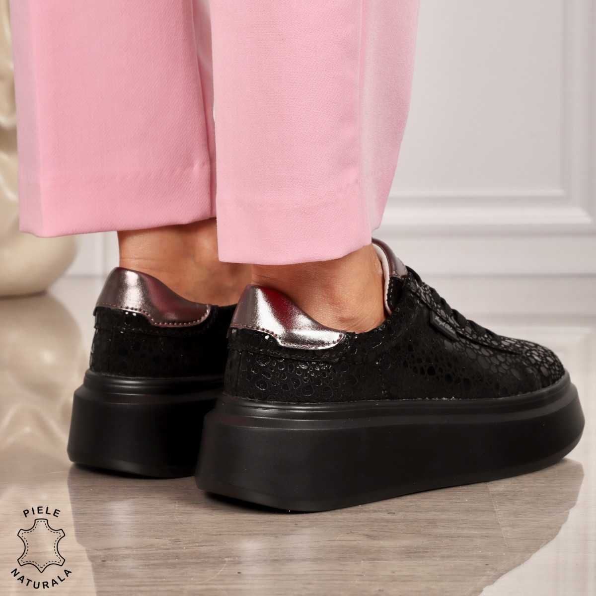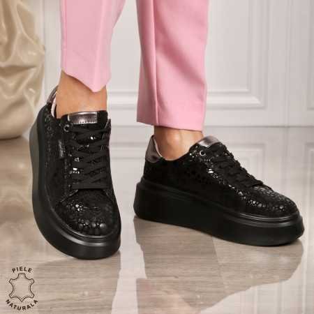 Pantofi CASUAL PIELE NATURALA CU SIRET CRL1450 NEGRU
