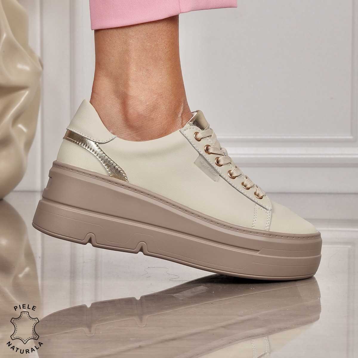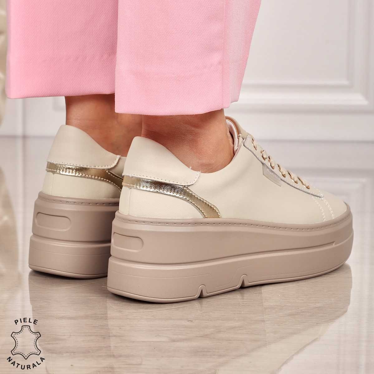 Pantofi CASUAL damă din piele naturală CU SIRET CRL1453 BEJ