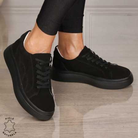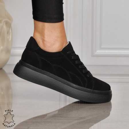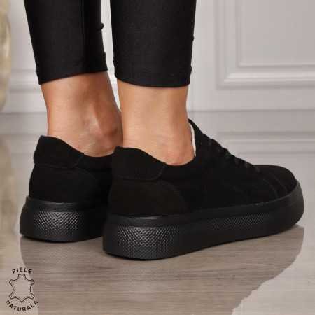 Pantofi CASUAL damă din piele naturală intoarsa CU SIRET CRL1452 NEGRU