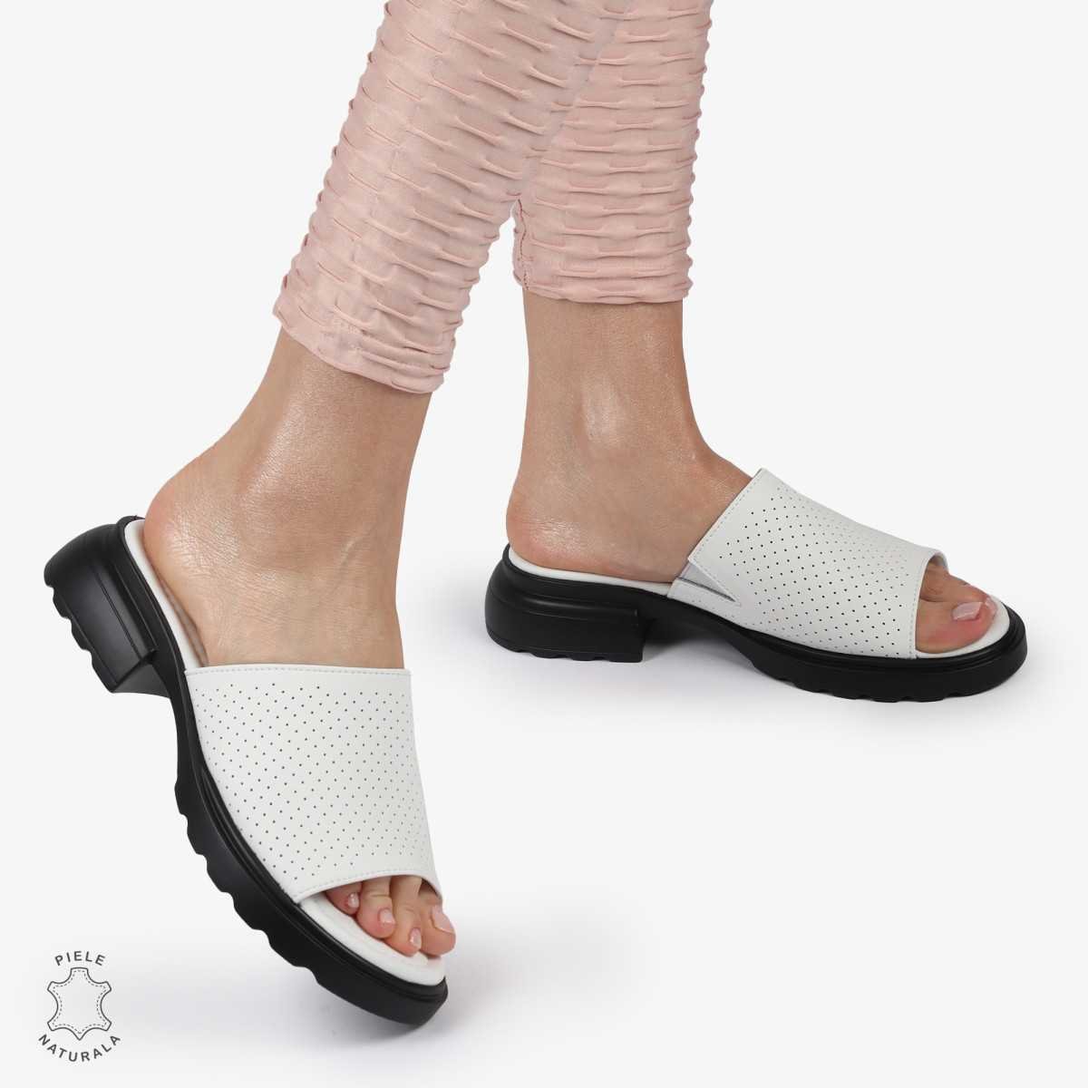 PAPUCI DAMA DIN PIELE NATURALA CU TOC MEDIU CRL1428 ALB
