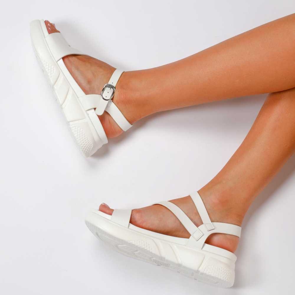 SANDALE dama din Piele ECOLOGICA CU BRETELE CRL1093 CULOARE: ALB