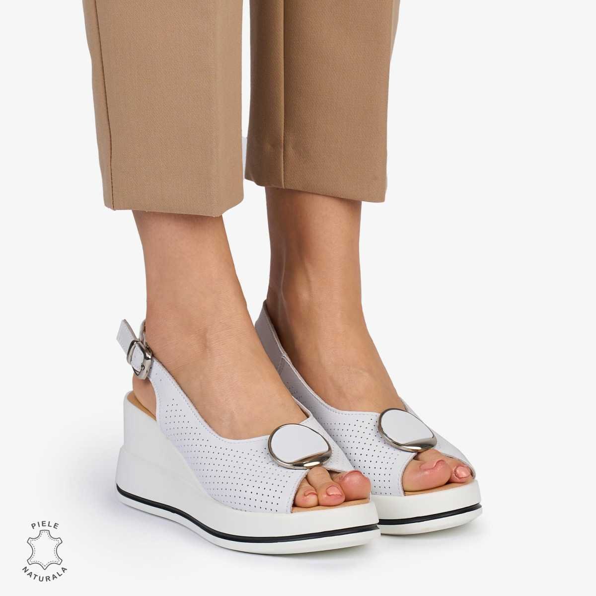 SANDALE Dama Piele Naturala CU TALPA INALTA SI ACCESORIU METALIC CRL1047 Culoare: ALB