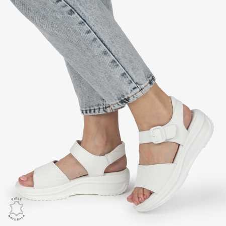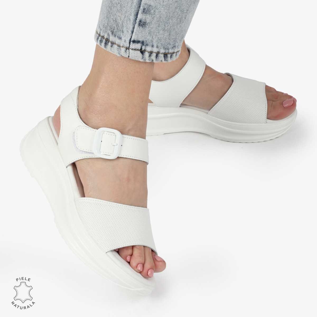 SANDALE Dama Piele Naturala CU CATARAMA CU TALPA INALTA CRL1371 ALB