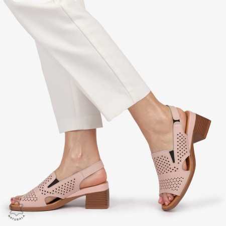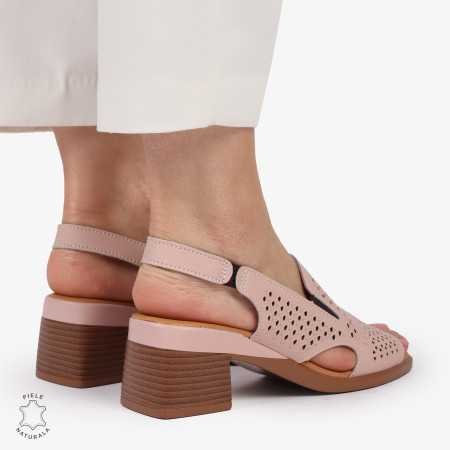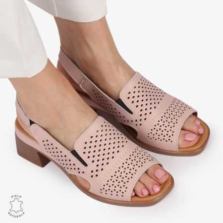 Sandale elegante din piele naturală CU STIL AJURAT CRL1404 ROZ
