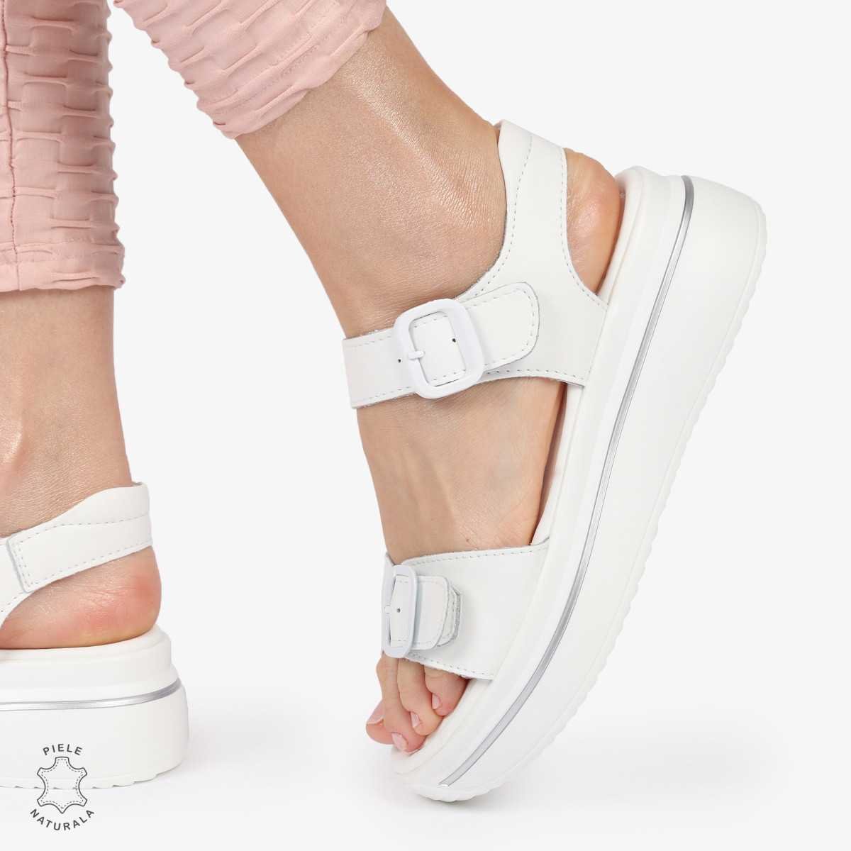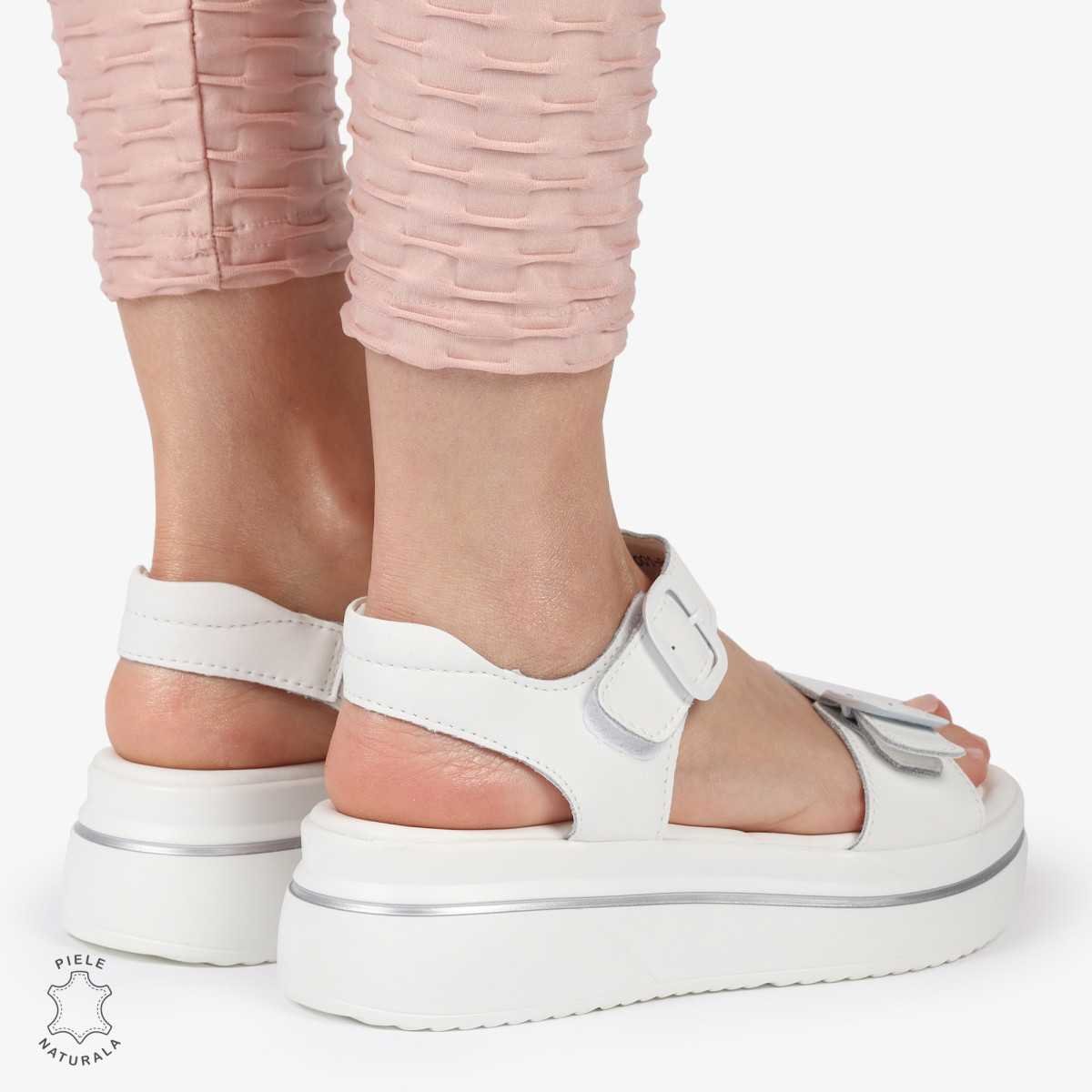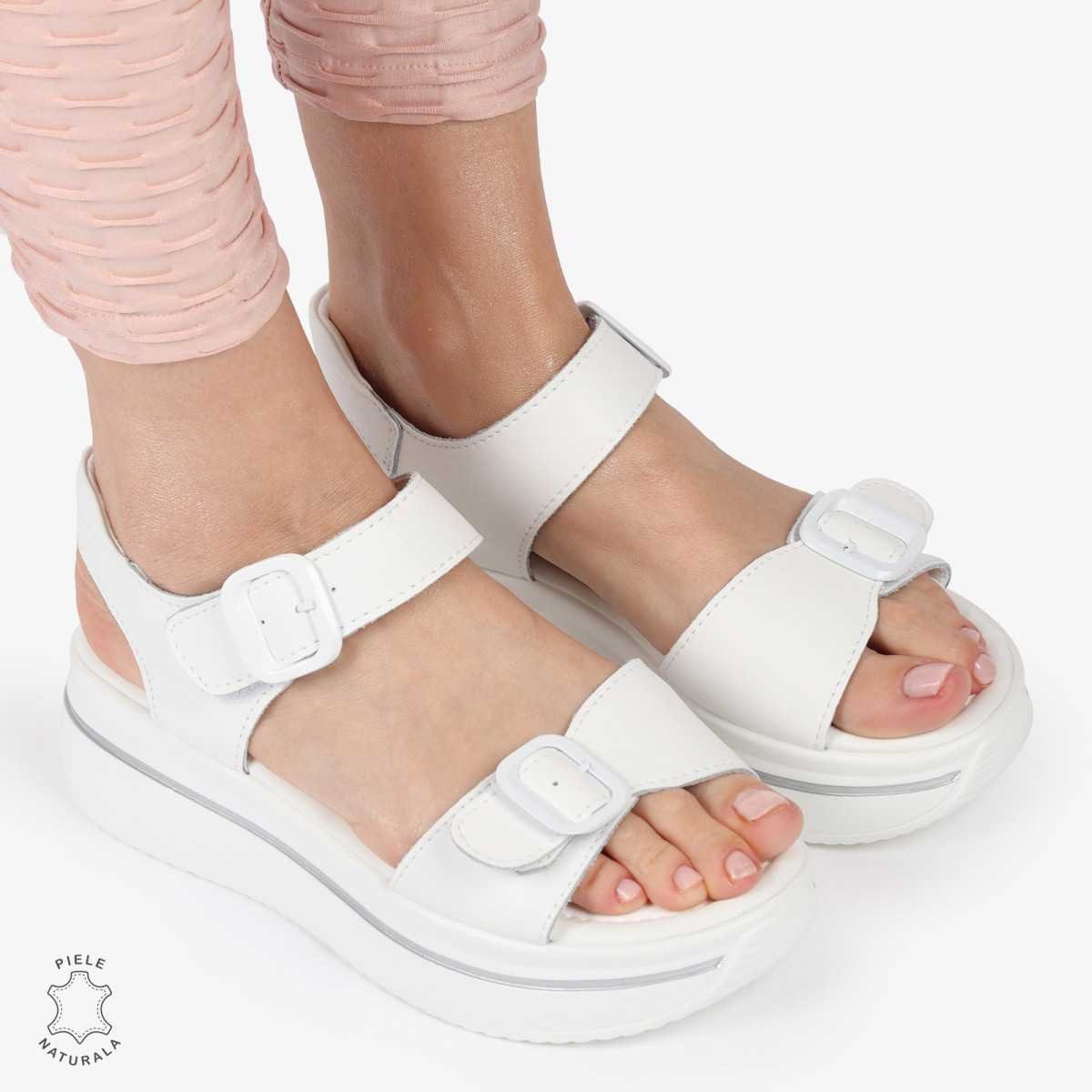 SAndale DAMA SPORT DIN PIELE NATURALA CU INCHIDERE CATARAMA CRL1412 ALB