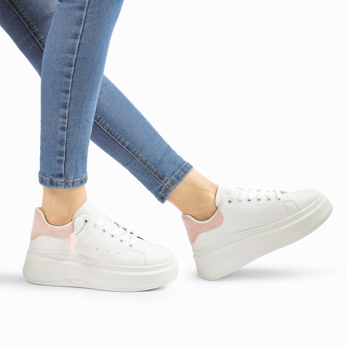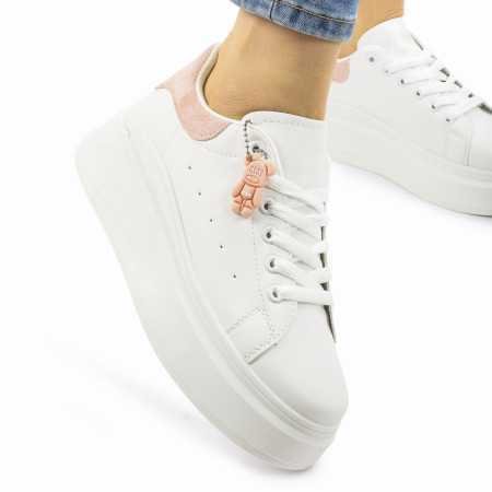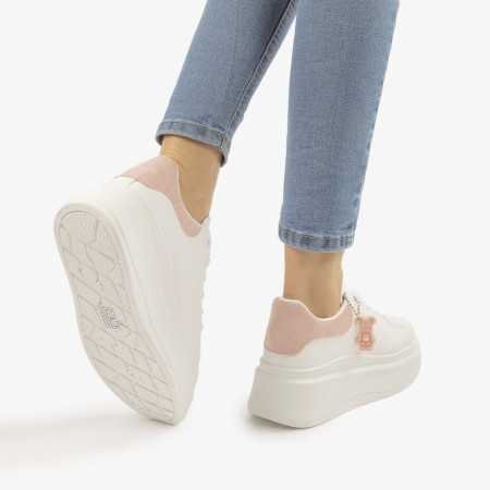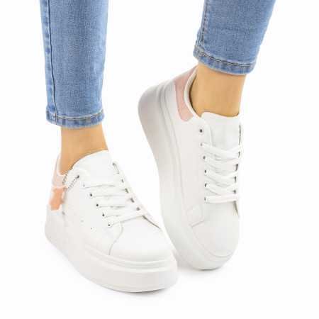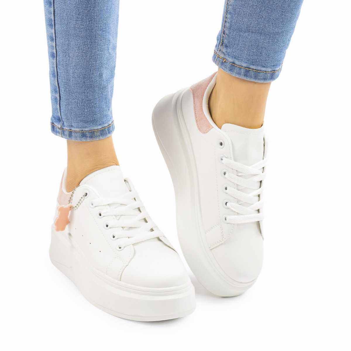 SNEAKERS din PIELE ECOLOGICA CRL0967CULOARE: ALB CU ROZ